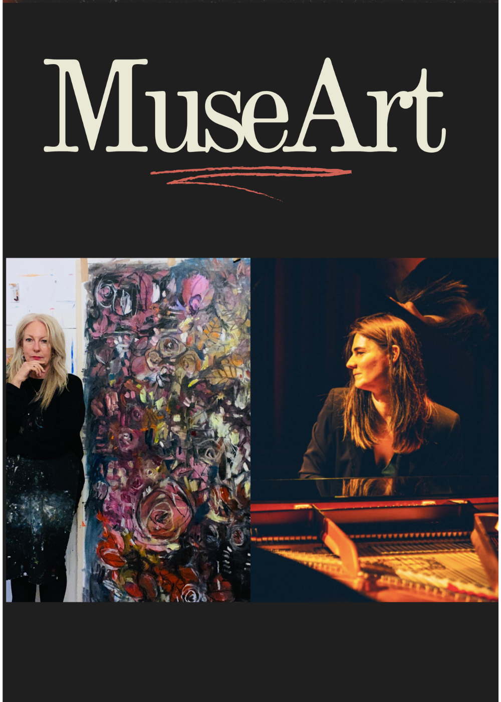 Music is a constant companion and inspiration in Carita’s studio, often shaping the rhythm, colour, and energy of the work. Taking this relationship to another level, MuseArt is a cross-artform improvisation, where paint and piano speak together as one. Visual artist Carita Farrer Spencer and award-winning pianist/composer Kym Alexandra Dillon combine their talents to create an entirely new spontaneous and live double-artwork, conjuring a unique experience for the audience.