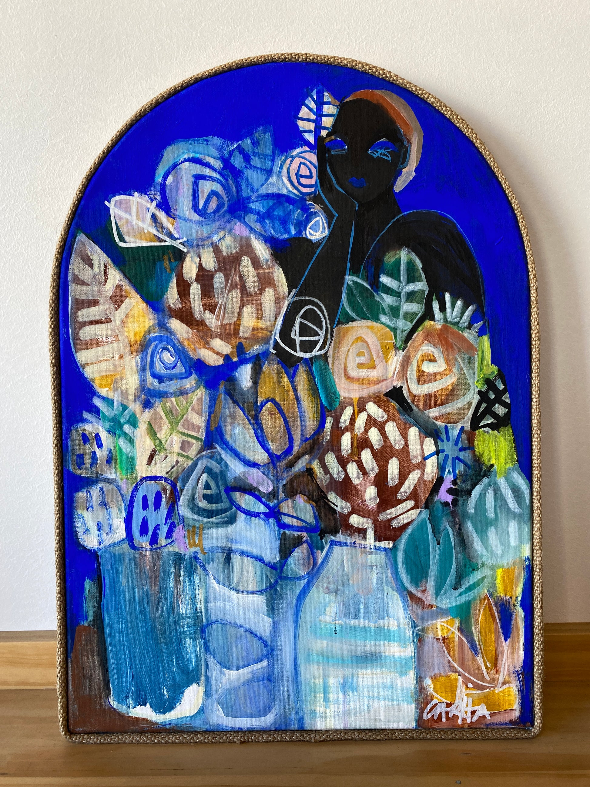 Acrylic on arch linen canvas with jute frame.